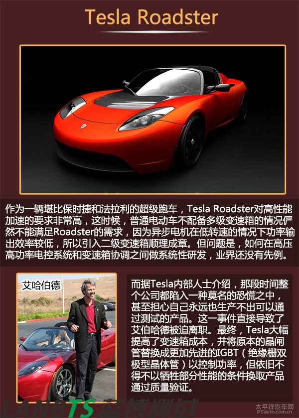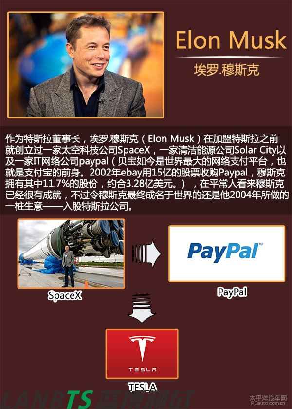 2003年7月1日,馬丁·艾伯哈德與長(zhǎng)期商業(yè)伙伴馬克·塔彭寧合伙成立特斯拉(TESLA)汽車公司。但由于艾伯哈德毫無(wú)這方面的制造經(jīng)驗(yàn),最終找到AC Propulsion公司。在AC Propulsion公司CEO的引見(jiàn)下,穆斯克認(rèn)識(shí)了艾伯哈德的團(tuán)隊(duì)并向TESLA投資630萬(wàn)美元,最終出任公司董事長(zhǎng)、擁有所有事務(wù)的最終決定權(quán)。但是后來(lái)由于艾伯哈德與高層管理的矛盾激化,于是被迫要求離開(kāi)公司,他本人只作為特斯拉公司的一個(gè)股東存在。而穆斯克當(dāng)任董事兼CEO全面掌握了特斯拉并帶領(lǐng)著特斯拉走上了一條汽車革命者的道路。