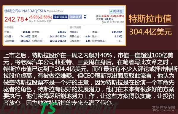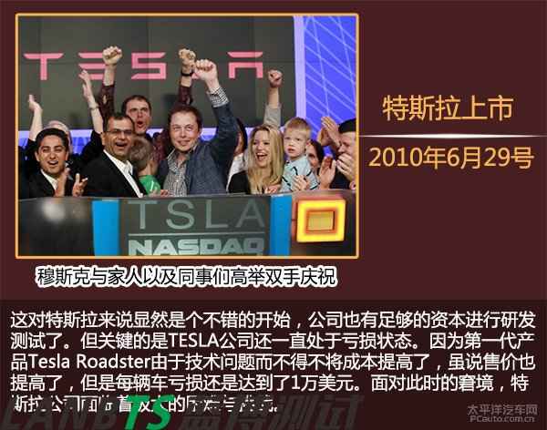 可以說(shuō),這三筆錢把Tesla從懸崖邊拉了回來(lái)。在熬過(guò)這段艱難的時(shí)光后,Tesla的資金情況逐漸好轉(zhuǎn)。2010年特斯拉在納斯達(dá)克上市,融資額達(dá)2.26億美元。開(kāi)盤當(dāng)日,穆斯克也在帳面上力挽狂瀾地賺了6億3千萬(wàn)美元。而上市之后,特斯拉股價(jià)在一周之內(nèi)飆升40%,市值一度超過(guò)100億美元,將老牌汽車公司菲亞特、三菱甩在身后。