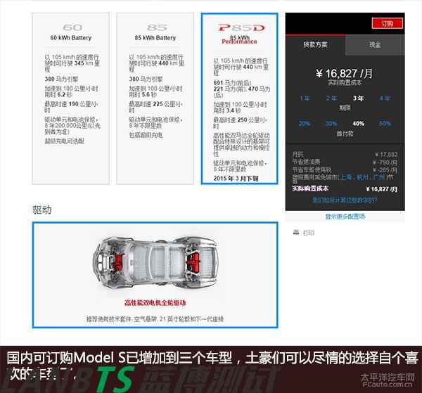 5. 采用85kWh才有標(biāo)配(進(jìn)入中國(guó)的車型全部為85kWh)SuperCharging充滿80%只需45分鐘。(這種充電方式現(xiàn)在僅存在北美。而在未來(lái),特斯拉首先會(huì)在北京至上海的高速沿線上建立這種超級(jí)充電站。)