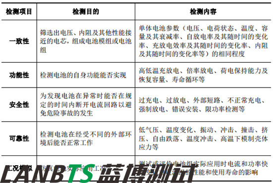 (2)鋰電池檢測(cè)的項(xiàng)目與目的