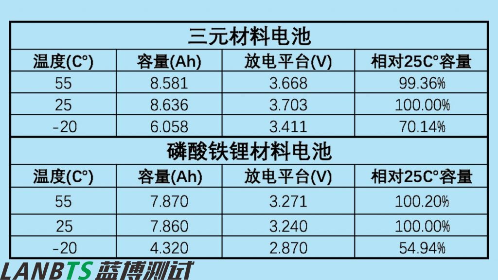 “相對(duì)25℃容量”是指不同溫度條件下放電容量與25℃時(shí)放電容量的比值。該數(shù)值能夠準(zhǔn)確反映出電池在不同溫度條件下續(xù)航的衰減,越接近100%,電池表現(xiàn)越好。